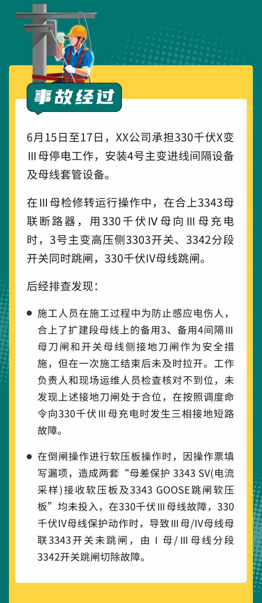 2018 年 6 月 16 日,某公司在 330kV 一變 330kV Ⅳ 母向 Ⅲ 母充電時,因送變電公司備用間隔開關(guān)母線側(cè)接地刀閘未拉開漏項操作,造成 330kV Ⅲ、Ⅳ 母線跳閘。