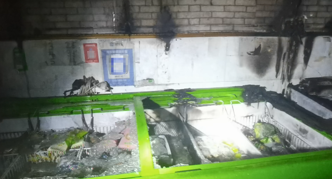 火災(zāi)造成店鋪內(nèi)數(shù)臺冰柜及大批雪糕被燒毀。