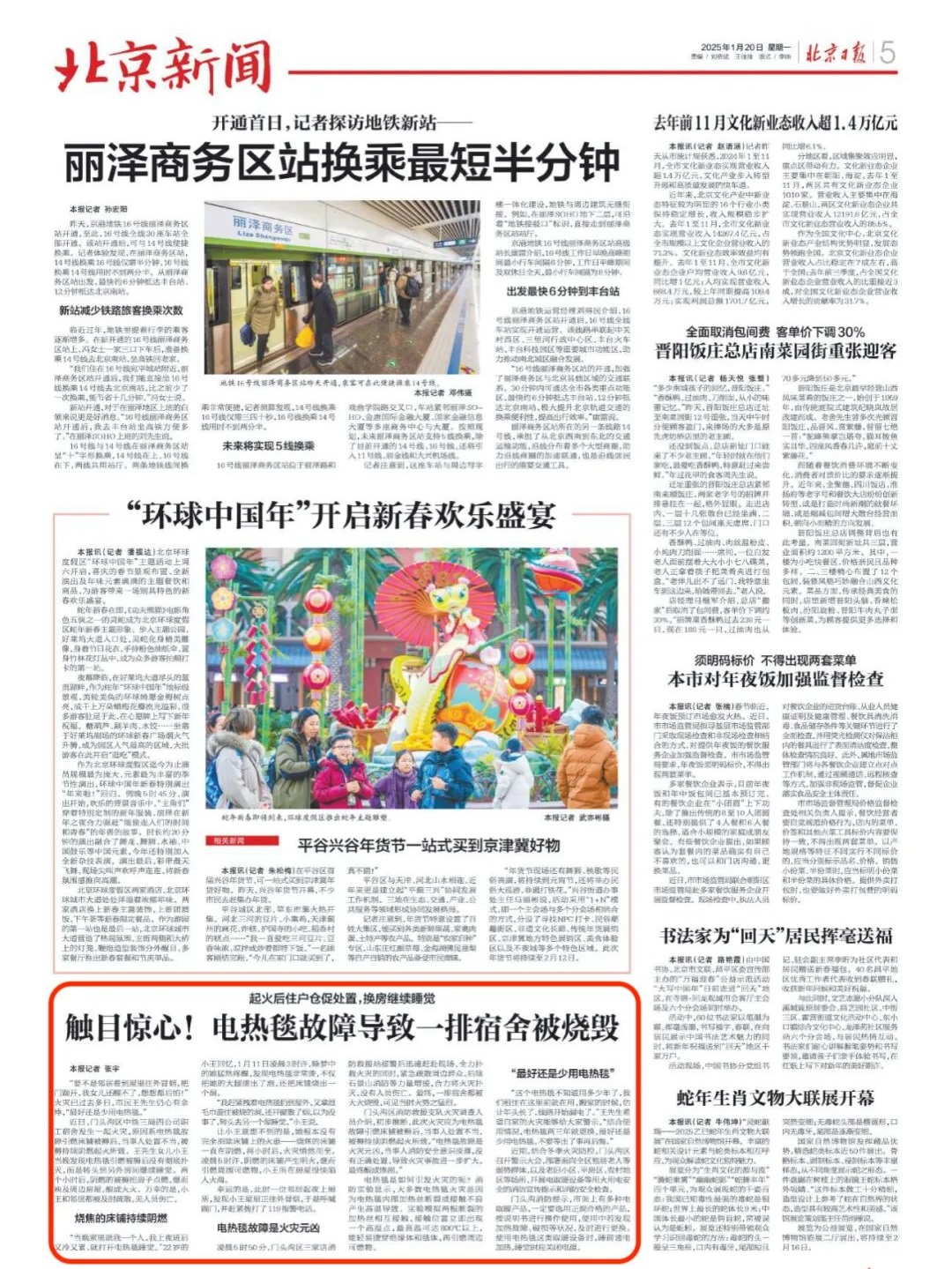 1月20日,北京日報報道新聞《觸目驚心!電熱毯故障導(dǎo)致一排宿舍被燒毀》。