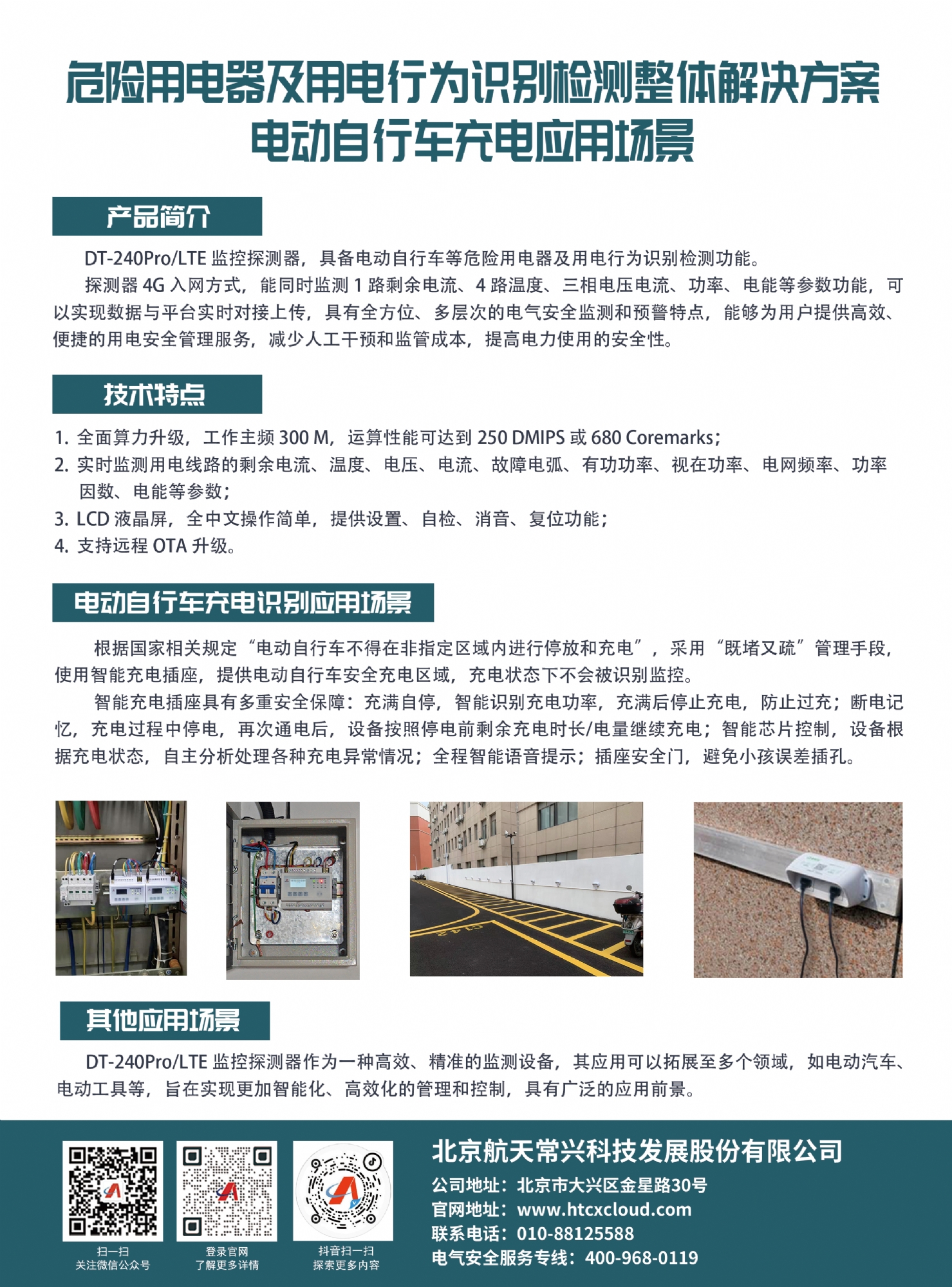 本產(chǎn)品版本在保障基礎(chǔ)檢測(cè)參數(shù)功能上,增加對(duì)電動(dòng)自行車充電等危險(xiǎn)用電行為識(shí)別及報(bào)警功能。