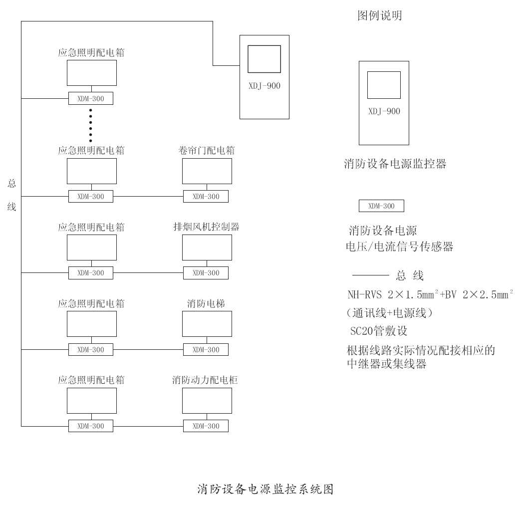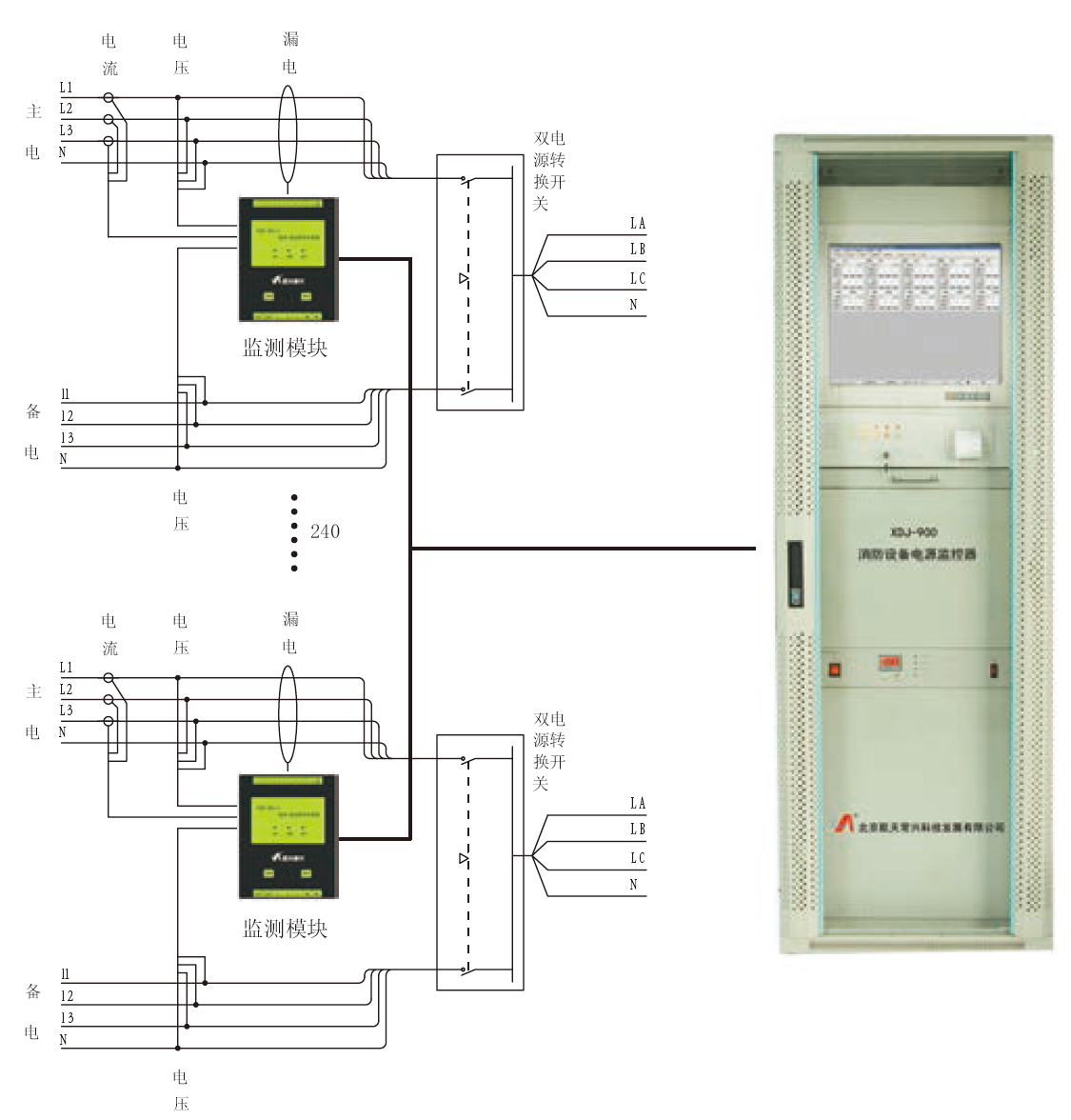 XDM-300/AC監測模塊與XDJ-900監控器連接使用來構成消防設備電源監控系統