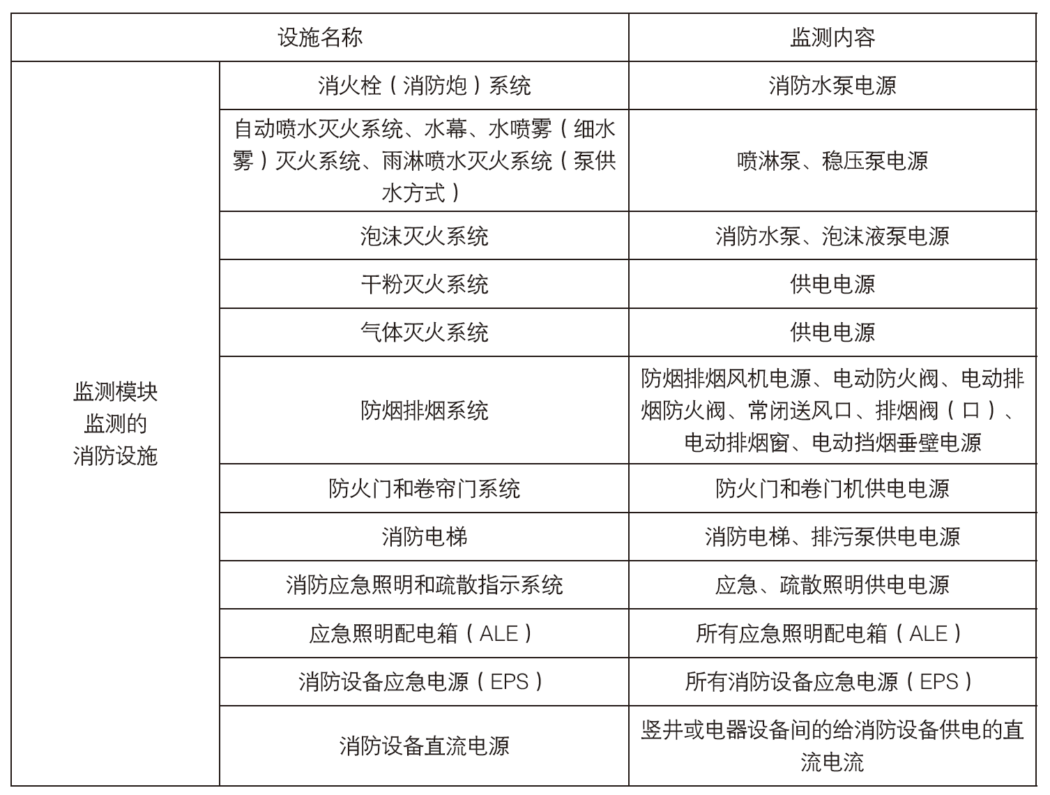 ●通常消防負荷及監測模塊具體設置場所和監測內容如下圖所示: