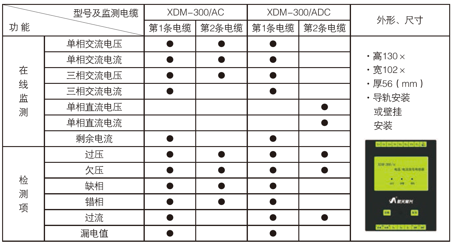 1 監測電壓:過壓(>110%電壓額定值) 欠壓(<85%電壓額定值)